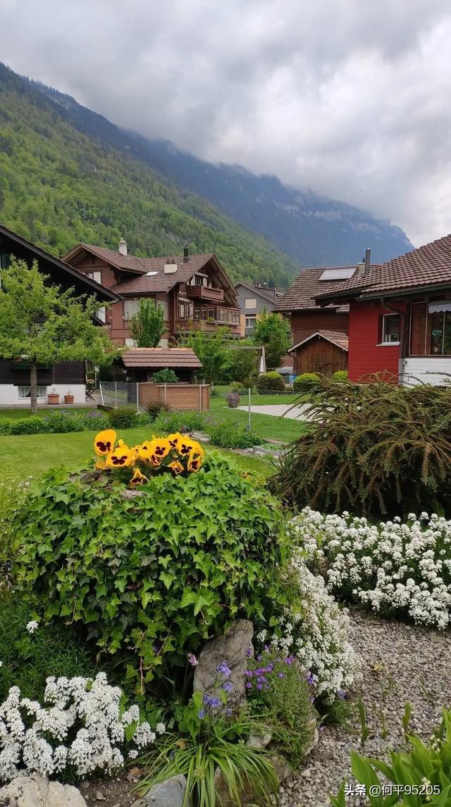 在瑞士的旅途中,我親眼看見阿爾卑斯山下風(fēng)景秀麗的自然環(huán)境,人們有的居所點(diǎn)綴在鮮花樹叢中,與大自然融為一體。