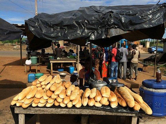 面包和米飯也是科特迪瓦當(dāng)?shù)氐闹魇?,但是相比較Attiéké和炸芭蕉來說價格不那么親民。當(dāng)?shù)氐拿姘头▏o二致,有長棍面包或者全麥面包羊角面包巧克力面包(很少葡萄面包因為當(dāng)?shù)夭划a(chǎn)葡萄)??铺氐贤呷俗雒罪堄袀€特點就是盡量不做成白米飯,一般會加入少量香料或者蔬菜,但是加入量又不如我們中國人吃的菜飯那么多,僅僅只是為了調(diào)節(jié)口味。