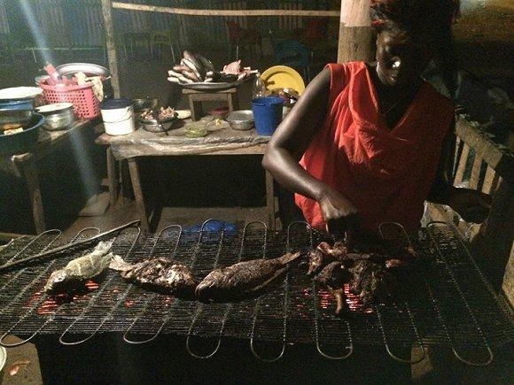 科特迪瓦面對著大西洋,沿海地區(qū)又有諸多內(nèi)湖,盛產(chǎn)各種海鮮河鮮,不同季節(jié)的市場上可以找到龍蝦大閘蟹烏賊魷魚海蠣幾乎任何一種你想要的海鮮,價格也不算太貴。但是據(jù)我的觀察,當(dāng)?shù)厝似綍r基本只吃魚極少吃其他海鮮,主要有金槍魚,羅非魚(非洲鯽魚)、海鱸魚、鯛魚等等。當(dāng)?shù)厝耸秤敏~的量比吃肉還要多,畢竟肉是要養(yǎng)出來的,魚只要靠捕撈就好。我們的食堂每天中午一般就是兩道主菜,一道是魚,一道是雞肉或者牛肉。