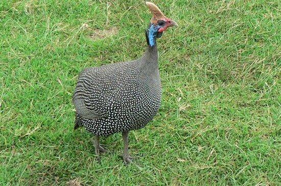 科特迪瓦現(xiàn)在算是半個穆斯林國家,所以豬肉并不太普遍,雞肉自然也就成了當(dāng)?shù)厝俗钋嗖A的廉價肉類。當(dāng)?shù)赜幸环N非常有名的雞叫做Pintade珍珠雞,也稱非洲雞,活著時候長的還蠻高貴: