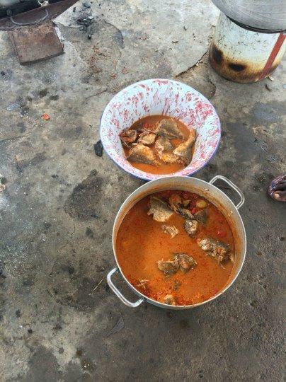 中餐講究醬料入味食材,西餐則是醬料與食材分離。所以西餐里衍生出了中餐里所沒有的醬汁體系。到了科特迪瓦,前面說過食材的做法都比較單一,所以醬汁就成為科特迪瓦人飲食習(xí)慣中非常重要的一環(huán)。尤其是當(dāng)?shù)厝送矚g把食材魚呀肉呀浸泡在非常濃厚的醬汁里吃,與中國人法國人的習(xí)慣都想去甚遠(yuǎn),大家可以通過以下一些圖片隨意感受一下。
