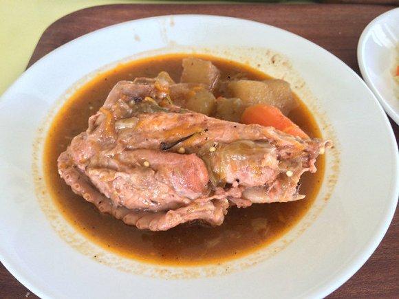 當(dāng)?shù)厝俗霾说幕驹瓌t是:不管是什么食材先熏烤再說,用當(dāng)?shù)氐姆ㄕZ叫做braiser(注意這與法國法語中的Braiser或者英語中的Braiser基本不是一回事)。我個人估計熏烤這種做法可以占到當(dāng)?shù)嘏胝{(diào)方式的三分之二以上,其次是燉(rago?t)和煮(bouilli),很少有我們中國人拿手的炸和炒。經(jīng)常到了餐廳里面,也沒有菜單,老板就過來問你:吃雞肉還是魚肉?你只要做一個二選一就好了,心照不宣這里的菜只有一種做法:熏烤。