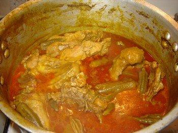 秋葵醬(Sauce Gombo),這可能是當(dāng)?shù)刈钍⑿械尼u汁了。下圖是這是在我一個同事家拍的,他把肉和魚都混到一起了,實在是有點不堪。