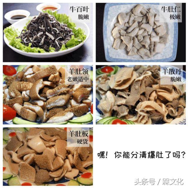 肚,其實(shí)就是胃。北京爆肚兒,爆的就是牛肚和羊肚。爆肚最常見的是這五種:牛百葉、牛肚仁、羊散丹、羊肚領(lǐng)、羊肚板。