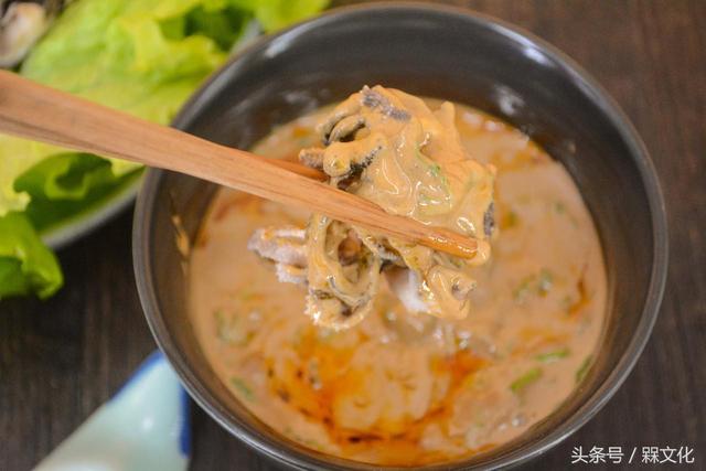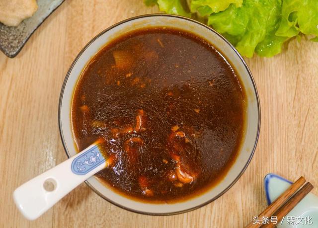 以芝麻醬為主料,配上韭菜花、腐乳、醋、蝦油、蒜汁、蔥和香菜,攪和均勻,這就是一碗地道的爆肚蘸醬了。