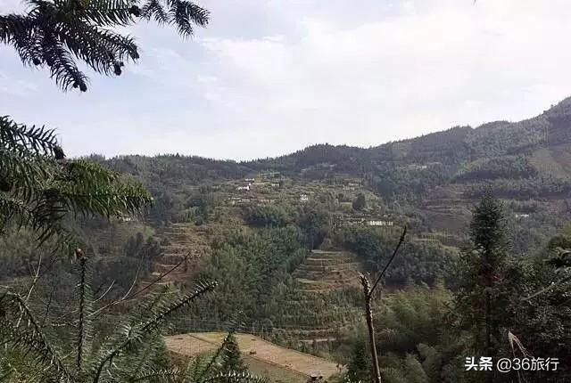 遠(yuǎn)望對面山坡,出現(xiàn)了一小村莊,猜想也就是我們要去的上茶坪村了(白色的房屋)。
