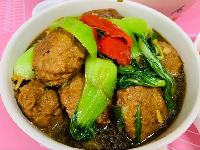 做法:藕圓自己提前炸好!上海青提前鹽水泡!洗凈備用!