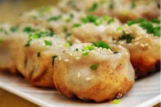 上海鍋貼不是煎餃,皮用開水和面搟成,餡料不加醬油,白湯。老早上海鍋貼呈細細彎彎的月牙形,現(xiàn)在幾乎都變得胖乎乎了。