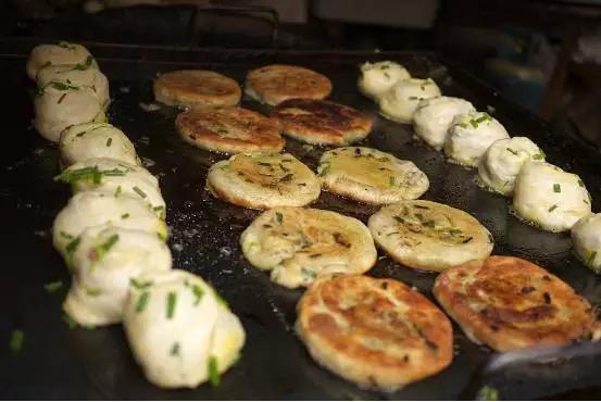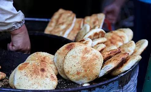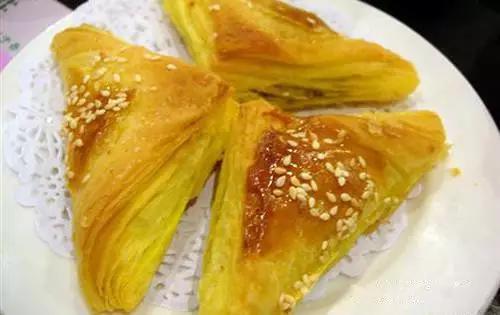 羌餅是回族食品,分油羌餅和硬羌餅兩種。油羌餅發(fā)酵足,油水足,香又松軟,比較常見。硬羌餅不用油,水分少,咬嚼勁,耐饑,不常見。羌餅用鍋同生煎,一鍋一餅,無餡,表面撒芝麻,切成一角一角出售。現(xiàn)在羌餅不多見了,被后期之秀東北千層餅取代了。