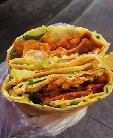 用面粉和雞蛋調(diào)成面糊,在平底鍋上攤成面餅,加雞蛋,搗碎攤勻,抹上甜面醬,辣醬,撒蔥花,加油條,裹成卷狀即成。上海人有個俗稱它包腳布,其實也叫山東雜糧餅。