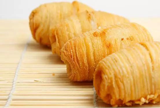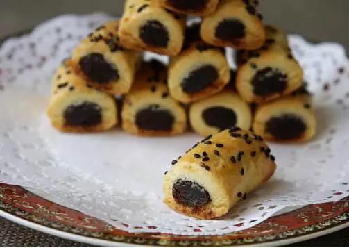 棗泥酥餅,上海地區(qū)漢族小吃。是用油酥面作皮,黑棗泥為餡,經(jīng)油炸成熟的面食。其色澤金黃,小巧玲瓏,外皮酥松,餡香甜可口。