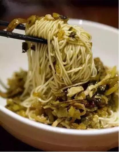 雪菜肉絲面是名氣僅次于陽春面的上海面,需要先煸炒肥肉絲,再抄雪里蕻,最后加瘦肉絲炒成澆頭直接放在湯面即成。舊時上海滄浪亭面館的雪菜肉絲面最佳。