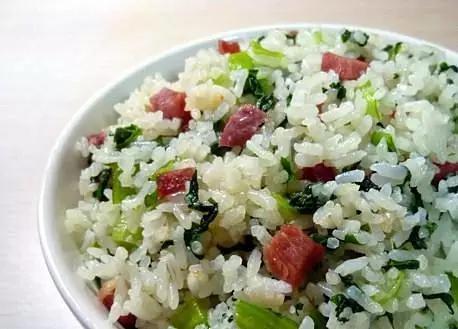 所謂豬油菜飯先將青菜炒一下,放入待煮的米飯中,還可加入咸肉,攪拌均勻后煮熟后淋上熟豬油配骨頭湯食用。老上海是美味齋最有名!