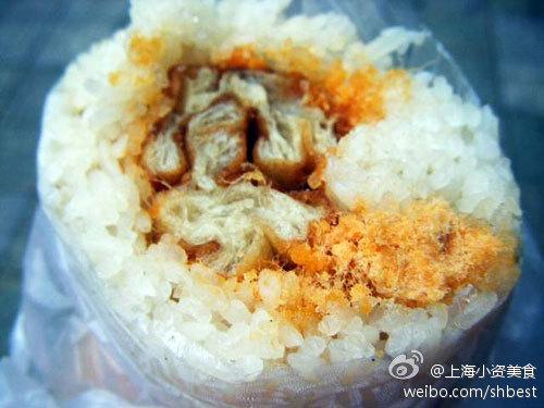 粢飯是江南最普及的民間早點品種,用粢飯包熱油條捏緊,或可加其他配料,如:榨菜等,熱吃甚美,且經(jīng)濟實惠。用糯米蒸制成飯,裹油條包捏而成。特點軟、韌、脆,邊吃邊捏,別具風(fēng)味。