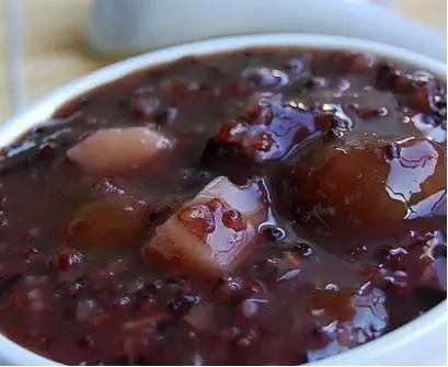 上海的八寶粥是從臘八粥演變而來的,所謂八寶是糯米、桂圓、紅棗、芡實、蓮子、薏仁、赤豆和冰糖,也有加銀耳、核桃仁或枸杞。