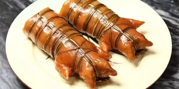 醞扎豬蹄又叫佛山扎蹄,做法有兩種形式,一是用整只豬手醞制而成;一是用豬腳開皮,抽去腳筋和骨,再用豬肥肉夾著豬精瘦肉包扎在豬腳皮內(nèi)醞制。所謂醞,就是用慢火煮浸。前者制作工序較少,后者制作工序較多。食法一般是把豬蹄切成薄片,外面一圈豬皮色澤金黃,里面的肉呈油亮的淺褐色。用芥辣和醬油、蔥、蒜蓉等做調(diào)料后,夾一片入口,輕輕咬下去,感覺豬皮爽嫩,嚼起來有一些彈性,而里面的肉松脆,滿口生香。