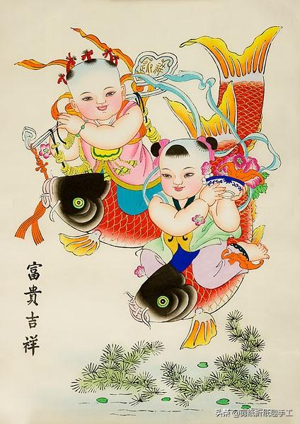 胖娃娃是楊柳青年畫中一個常見的題材,如年畫《連年有余》,畫面上的娃娃“童顏佛身,戲姿武架”,懷抱鯉魚,手持蓮花,取其諧音,寓意生活富足,已成為年畫中的經典,被各地模仿借鑒。不僅富有藝術欣賞性,而且具有珍貴的史料研究價值。