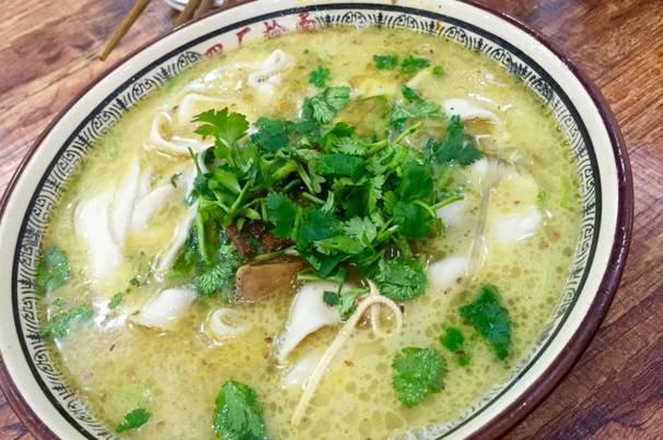 丸子軟Q彈牙,羊湯香醇濃郁,一把鮮韭菜如一縷清風打開你朦朧的味蕾,羊湯不夠隨便續(xù),丸子酥肉可兩摻。把餅絲泡進湯里,很容易就吸飽了湯汁,吃在嘴里有點糯糯的口感。