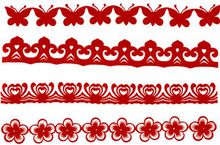 2.單色剪紙:?jiǎn)紊艏埵羌艏堉凶罨镜男问剑杉t色、綠色、褐色、黑色、金色等各種顏色剪成,主要用于窗花裝飾和刺繡的底樣。主要有陰刻、陽刻、陰陽結(jié)合三種表現(xiàn)手法。用于刺繡底樣的剪紙,常用剪刺結(jié)合的手法。折疊剪紙、剪影、撕紙等都是單色剪紙的表現(xiàn)形式。